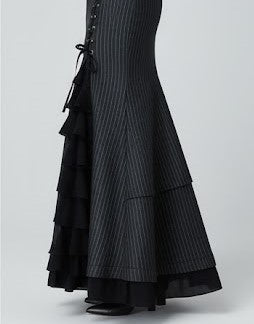 Tiered Ruffle Hem Pinstripe Skirt